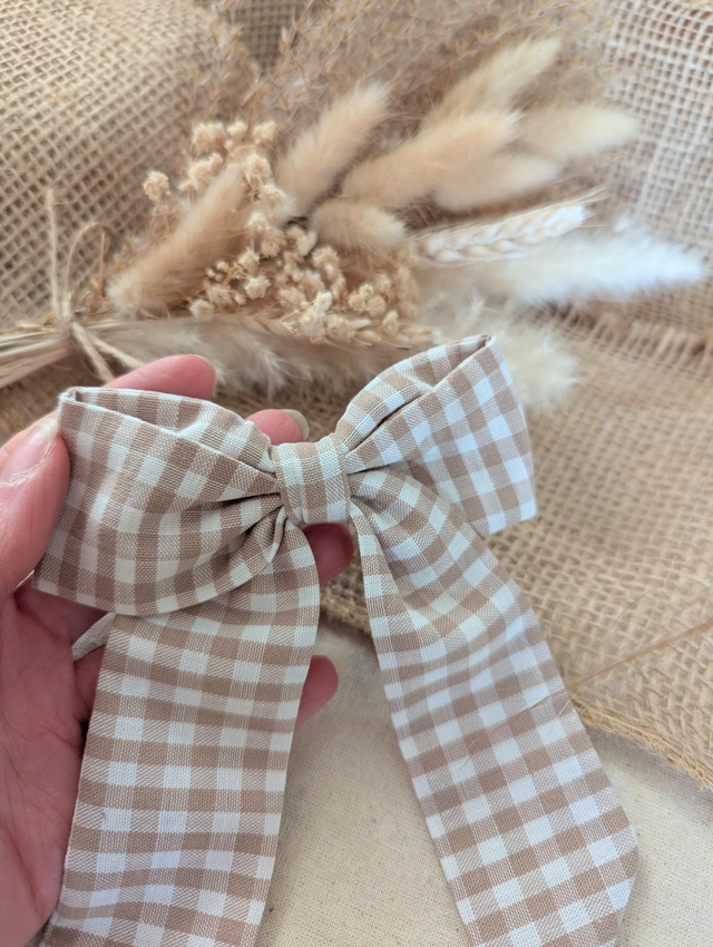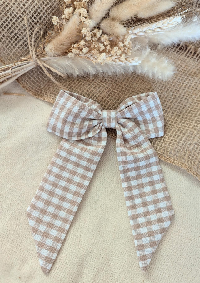 Cette maxi barrette en vichy marron glacé est l’accessoire parfait pour apporter une jolie touche élégante aux coiffures ✨