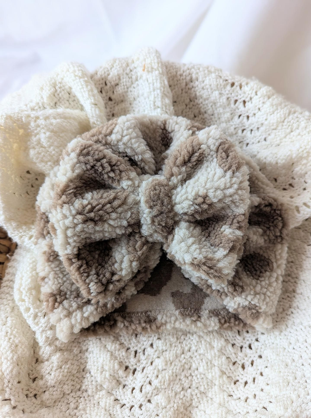 Offrez à vos enfants un accessoire à la fois doux et raffiné avec ce turban en sherpa imprimé Graou.