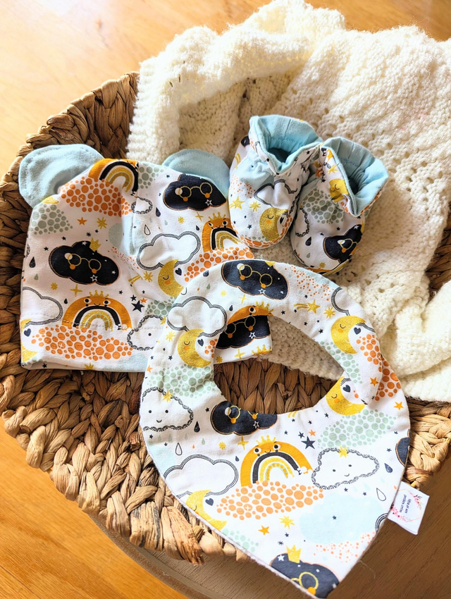 ✨ À assortir avec le bonnet et les chaussons nuage, disponibles dans ma boutique, pour une panoplie aussi mignonne qu’utile 💫